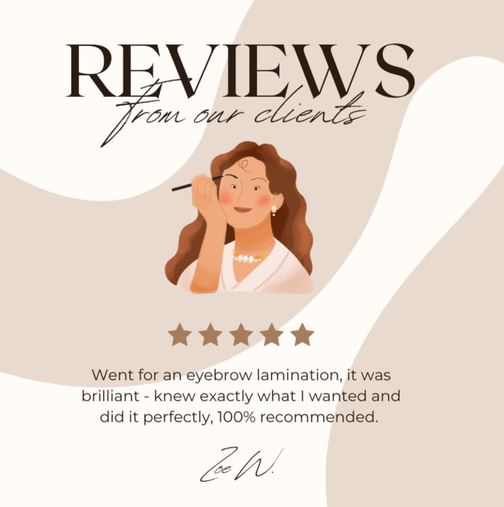 Hybrid brows combining lamination, wax and tint for defined, natural-looking shape that lasts for weeks.